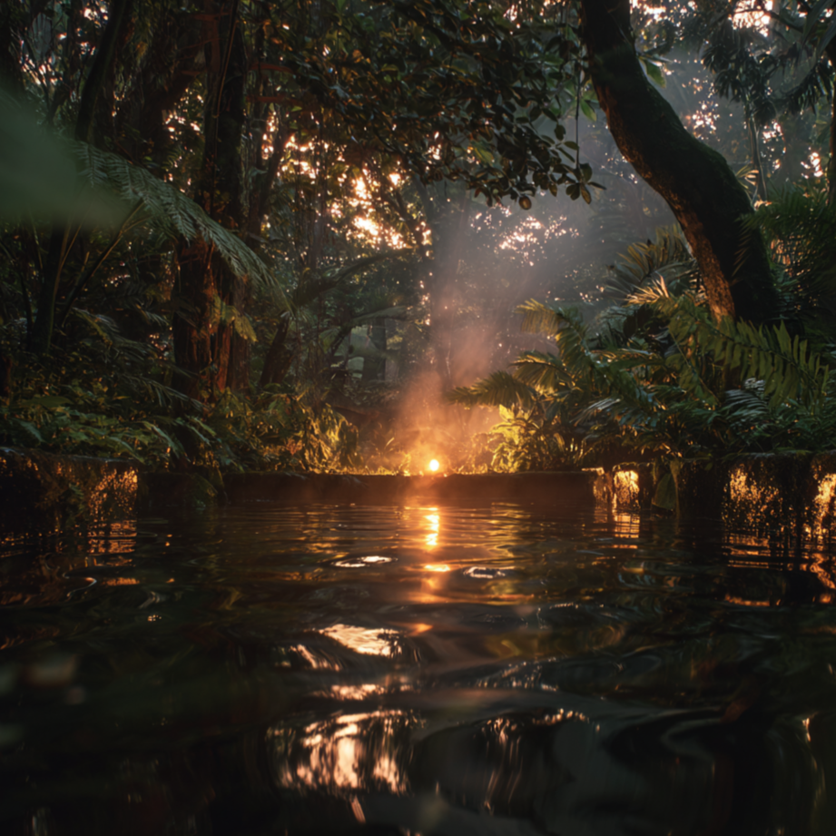 Jungle. Hot springs. Stone and water and fire. A place where the conditions for aliveness are already present — and we build the rest around that.